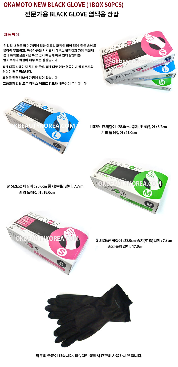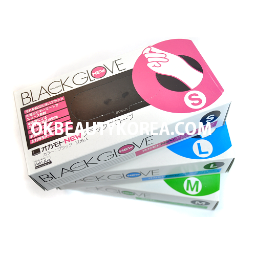 [OKAMOTO] NEW BLACK GLOVE 전문가용 염색용 장갑 大,中,小 1BOX 50EA
