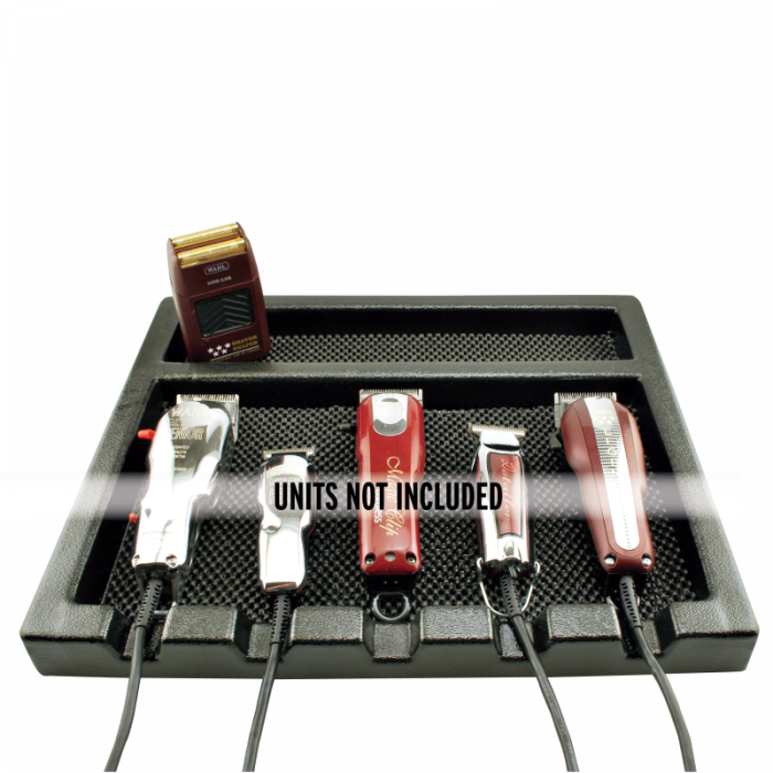 Wahl Professional Barber Tray로 도구로 깔끔하고 정돈된 상태로 유지하십시오! 이 5개의 슬롯은 아티스트가 염두에 설계되었습니다. 바버 트레이의 바닥은 제품이 트레이에 놓여 있는 동안 미끄러지지 않도록 설계되었습니다. 끈적이지 않은 미끄럼 방지 소재로, 필요할 때마다 간단하고 쉽게 세척할 수 있습니다. 이발소 트레이는 바닥에 5노트가 달려 있어 전선이 엉키거나 방해가 되지 않는 한 끈으로 감겨진 집게들이 그 안에 편안하게 쉴 수 있습니다.