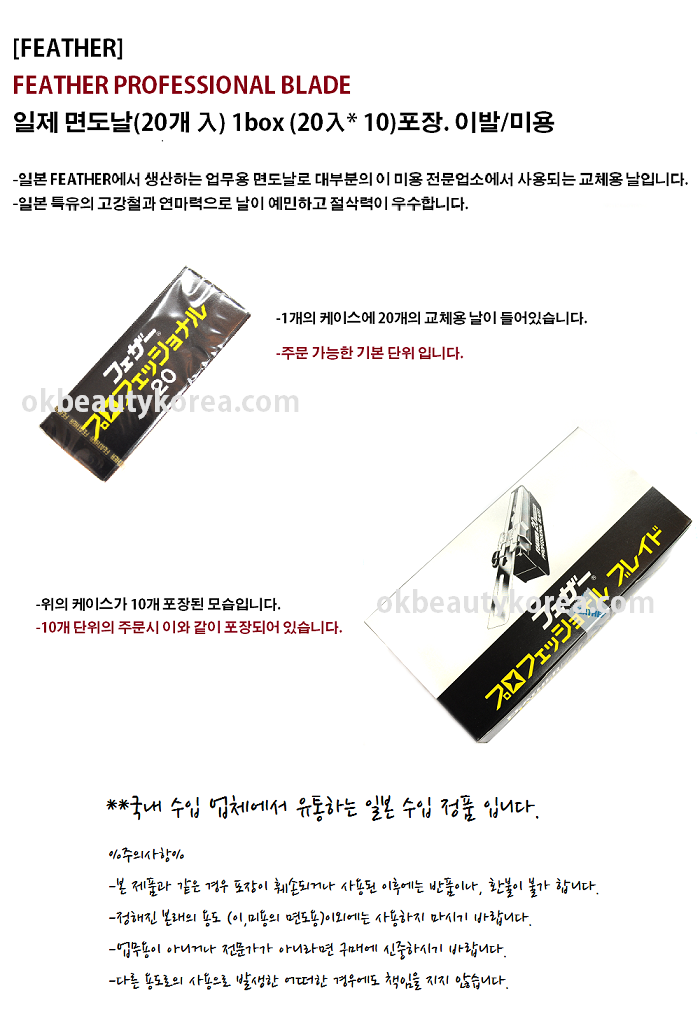 [FEATHER] FEATHER PROFESSIONAL BLADE 면도날(20개 入) 1box (20入* 10)포장/이발/미용