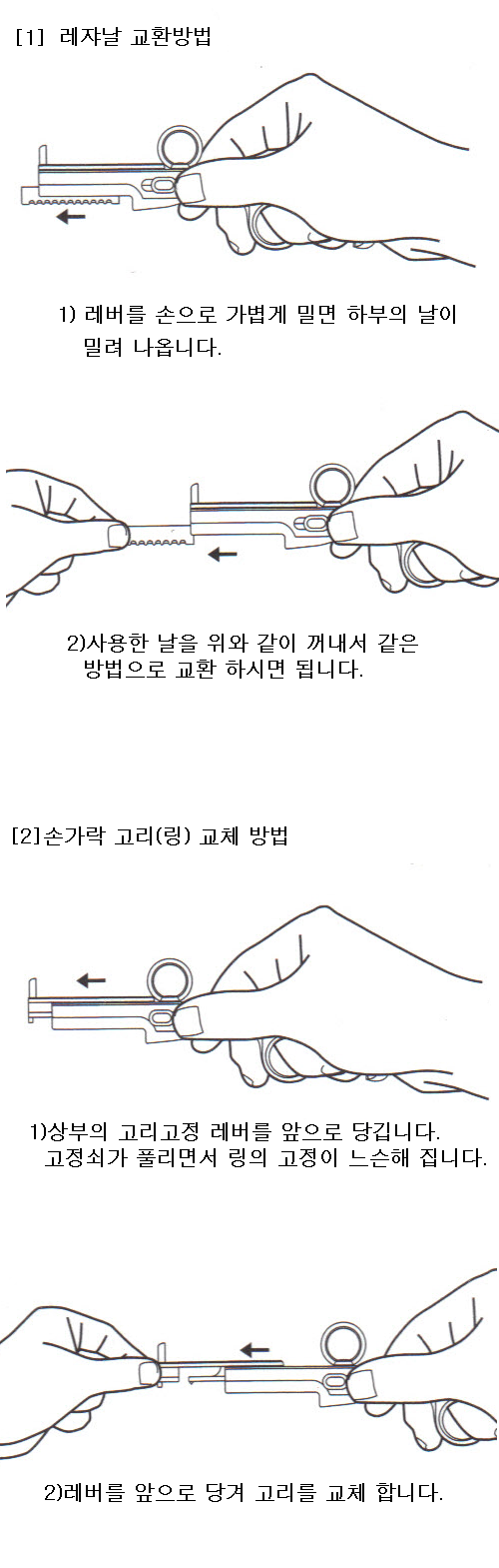 2. 가위처럼 약지를 넣어 레쟈의 위치를 고정하여 주면 됩니다. 혹은 응용 가능한 각종의 파지법이 있을 수 있습니다.