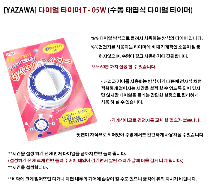 [YAZAWA] 다이얼 타이머 T - 05W 태엽식 다이얼 타이머