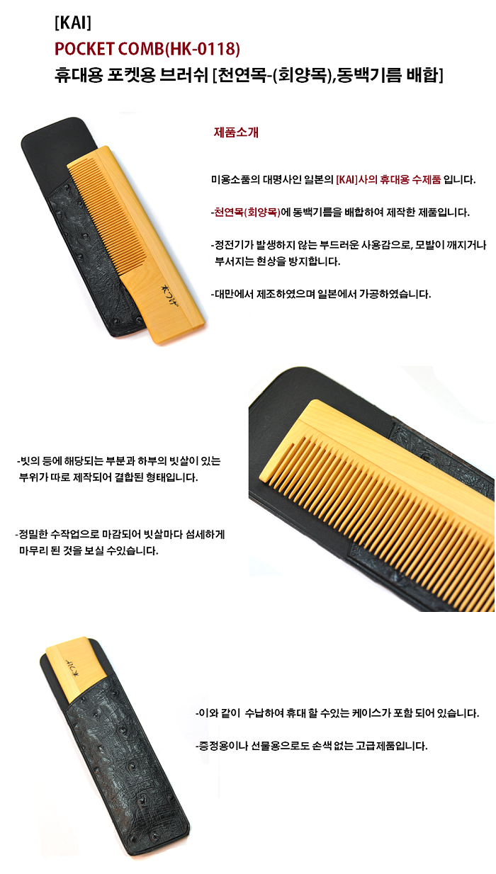 [KAI] POCKET COMB 휴대용 포켓용 브러쉬(천연목,동백기름 배합)