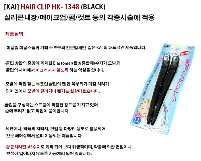 [KAI] HAIR CLIP HK-1348(BLACK) 실리콘내장/메이크업/펌/컷트 등의 각종시술에 적용