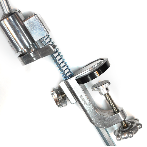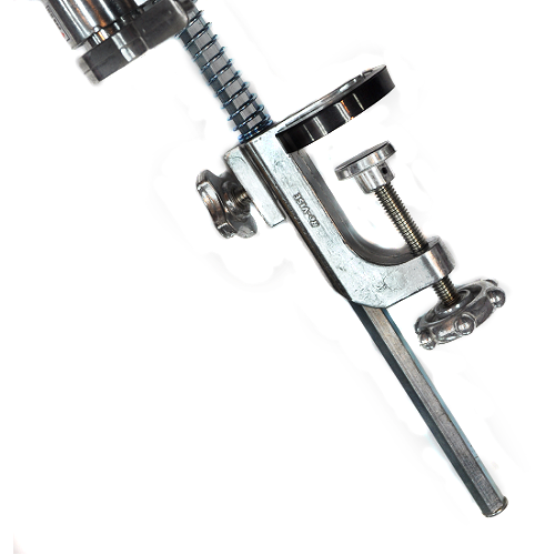 -탁상의 끝부분에 하부의 고정틀을 넣고 핸들을 조정하여 고정하는 방식으로 고정하는 방식은 일반 탁상용 홀더와 동일합니다.