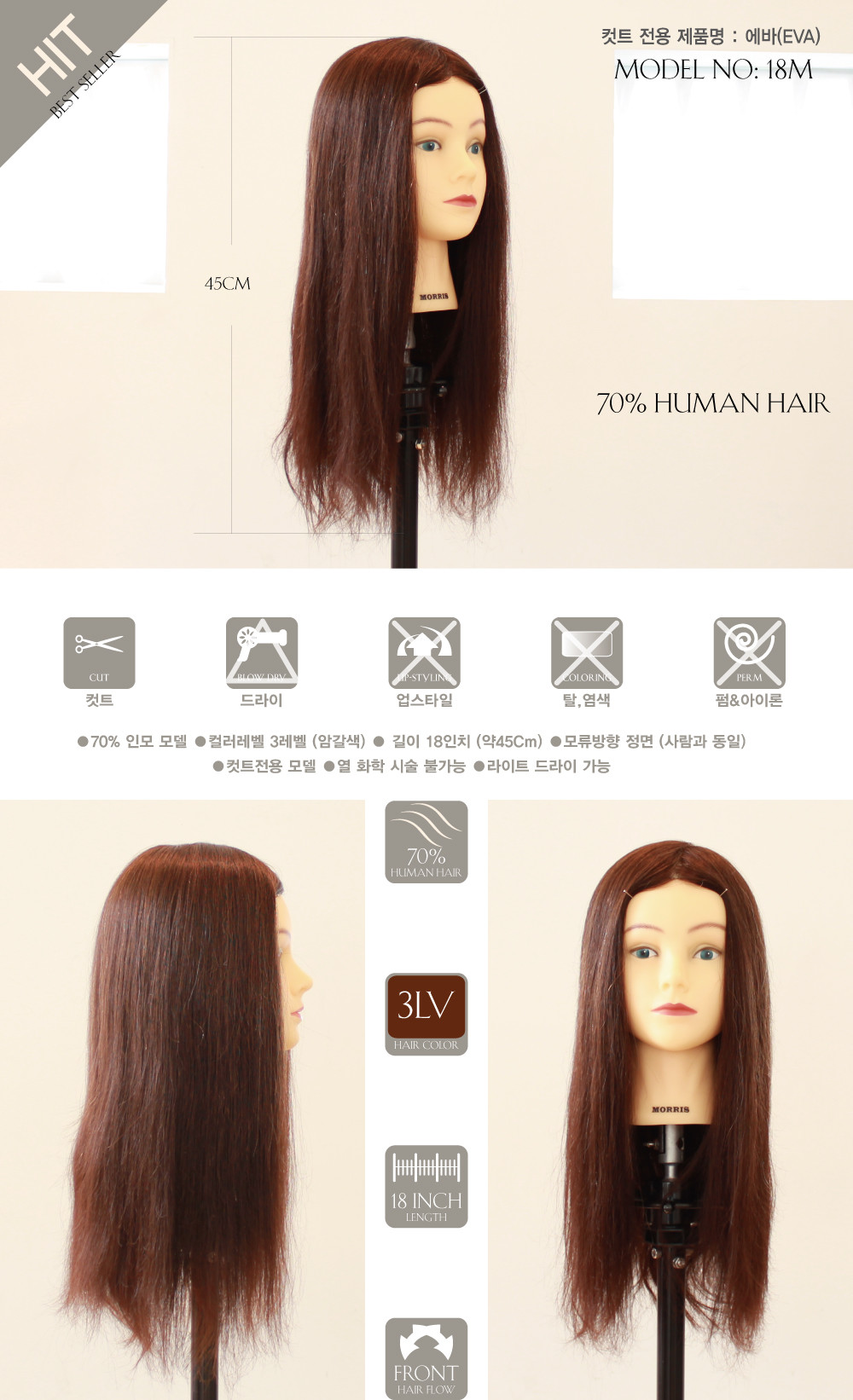 [모리스] 70%인모 18인치 컷트&라이트 드라이