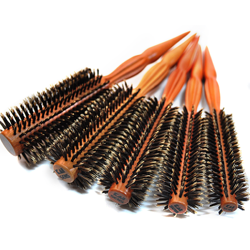 -나일론 소재 : 나일론은 모발에 공기를 넣어 풍성하게 만들거나 모발을 취하여 컬을 강하게 잡기 용이하기 때문에 에어 브러쉬 등 볼륨이나 컬을 위한 브러쉬 소재로 적용이 되며 모발과 잘 엉키지 않는 특성이 있습니다.