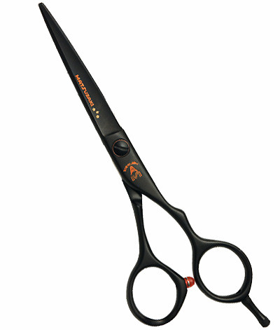 V 형 모델의 슬림하고 시원한 매트 블랙 컷트 가위입니다.